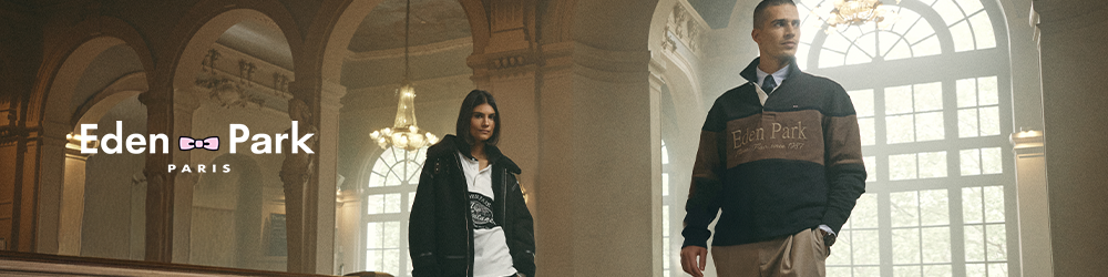 L’histoire d’Eden Park débute en 1987 lorsque Franck Mesnel et Eric Blanc décident de créer une marque de vêtements haut de gamme. C’est en jouant avec des bérets basques, des shorts longs, des blazers, maquillés en noir, avec des crampons dorés et pour finir avec un nœud papillon rose à l’occasion de 2 finales du championnat de France devant 50 000 personnes au Parc des Prince et en direct à la télévision que ces joueurs du Racing Club de France ont affirmé leur philosophie décalée : l’essence même du Showbizz et désormais de la marque Eden Park.