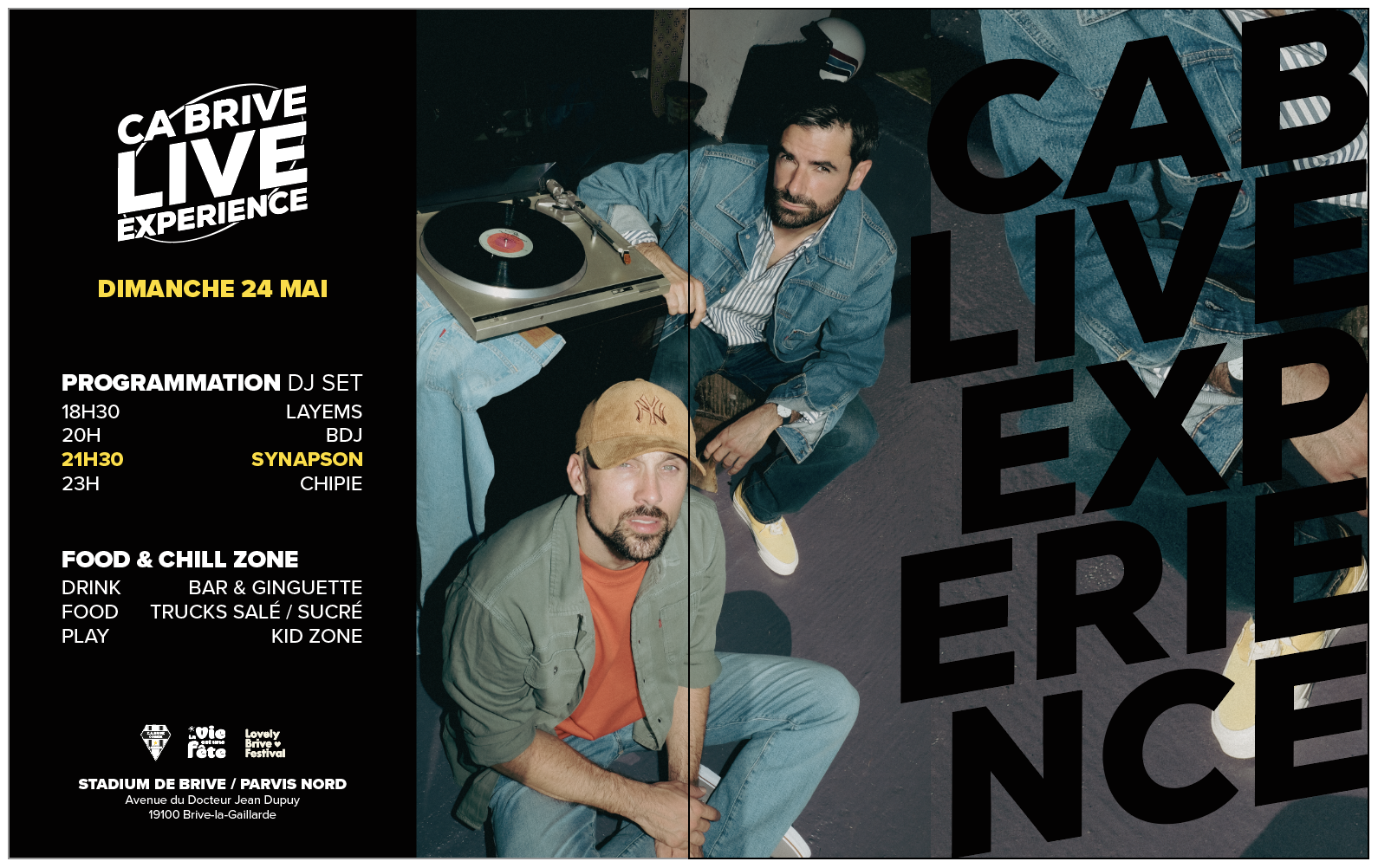 Le CA Brive vous donne rendez-vous pour une soirée exceptionnelle dimanche 24 mai avec la venue du célèbre duo électro Synapson dans un cadre unique : l’En-But Corrèze.