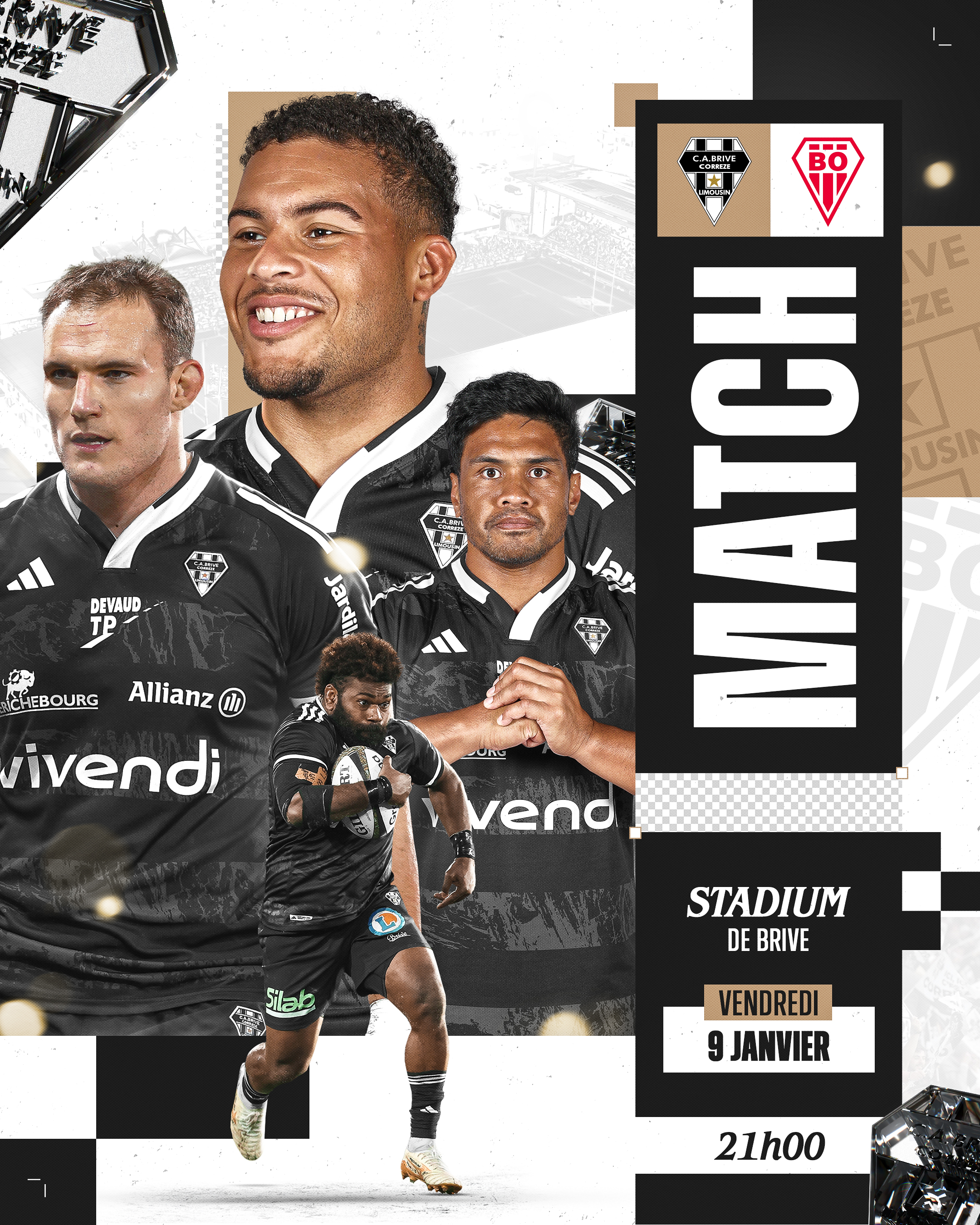 Pour cette nouvelle rencontre à domicile, le CA Brive et la Vie est une Fête s'associent pour faire du Stadium un lieu de vie incontournable. Plus qu'un simple match de rugby, le parvis va devenir un véritable lieu de fête pour tous les supporters Noir et Blanc. Un programme festif et musical à vivre dès l'ouverture des portes, avant, pendant et après le match.