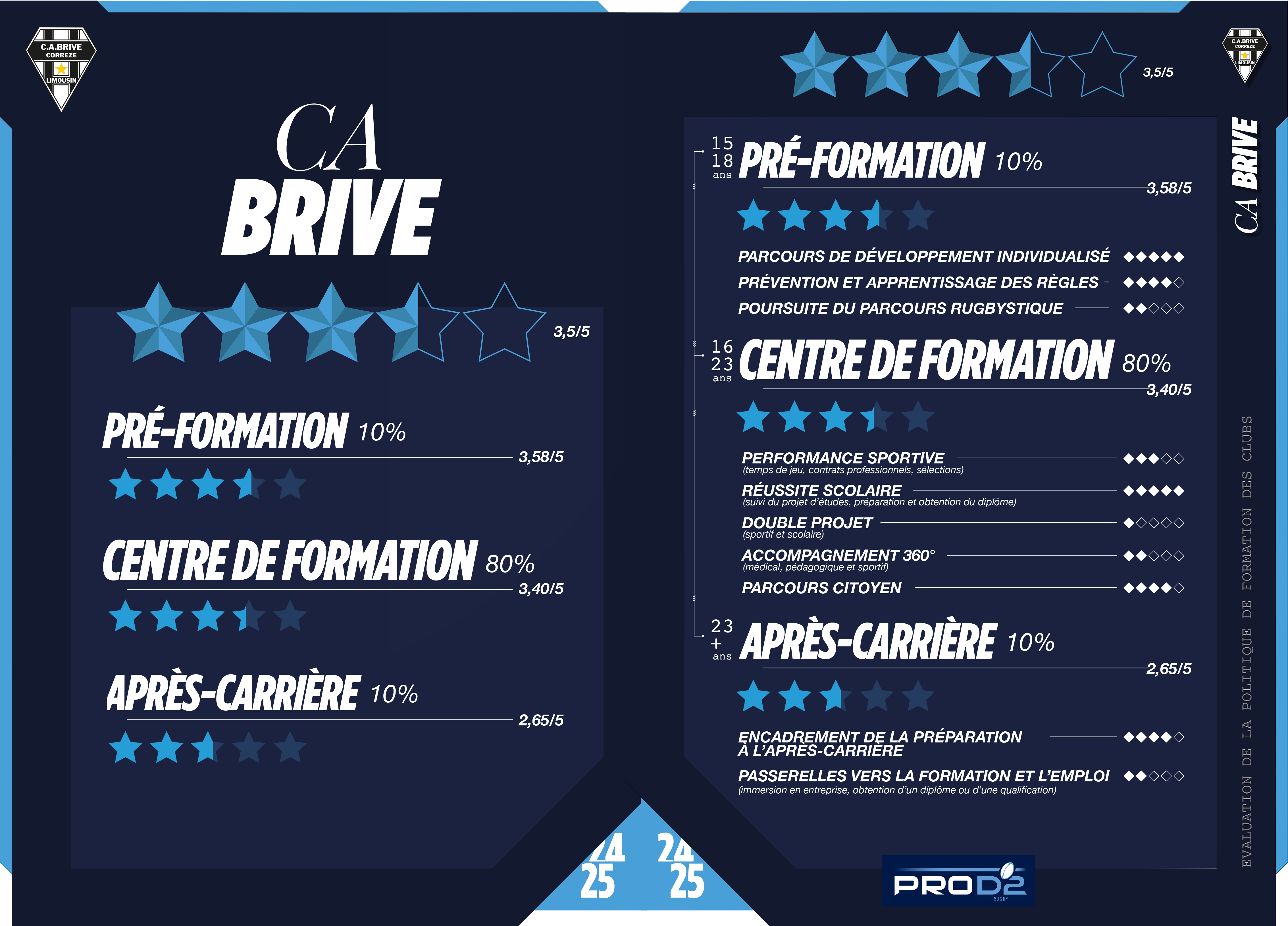 Le CA Brive remercie Sébastien Bonnet, le Directeur Sportif du Centre de formation, et l’ensemble des éducateurs et entraîneurs qui œuvrent chaque jour au succès de ce projet formateur ambitieux. Ce classement est une reconnaissance du travail collectif entrepris depuis de nombreuses saisons.