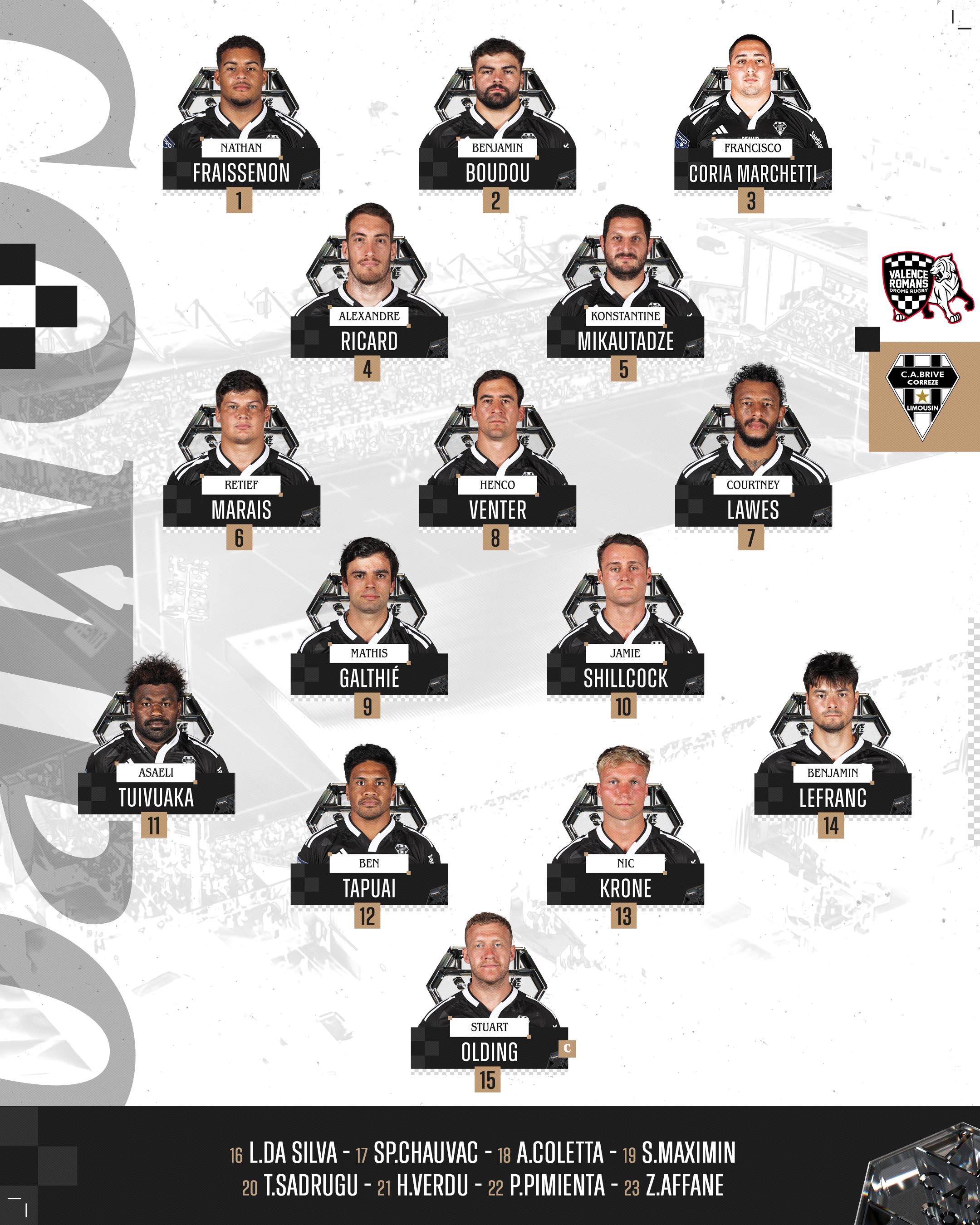 Le XV de départ des Noir & Blanc